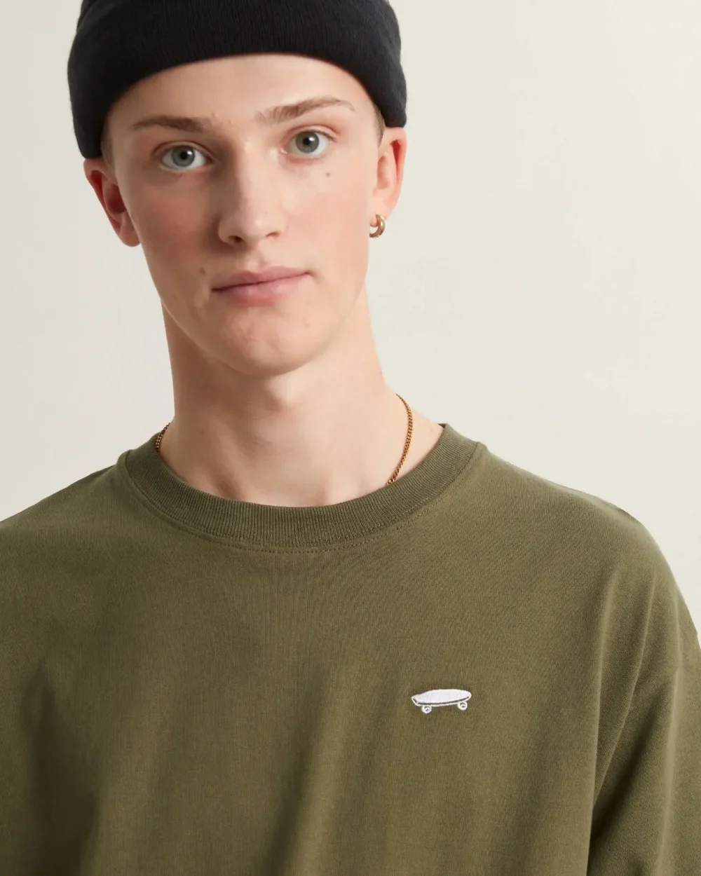 לוגו סקייטבורד רקום בעדינות על החזה השמאלי