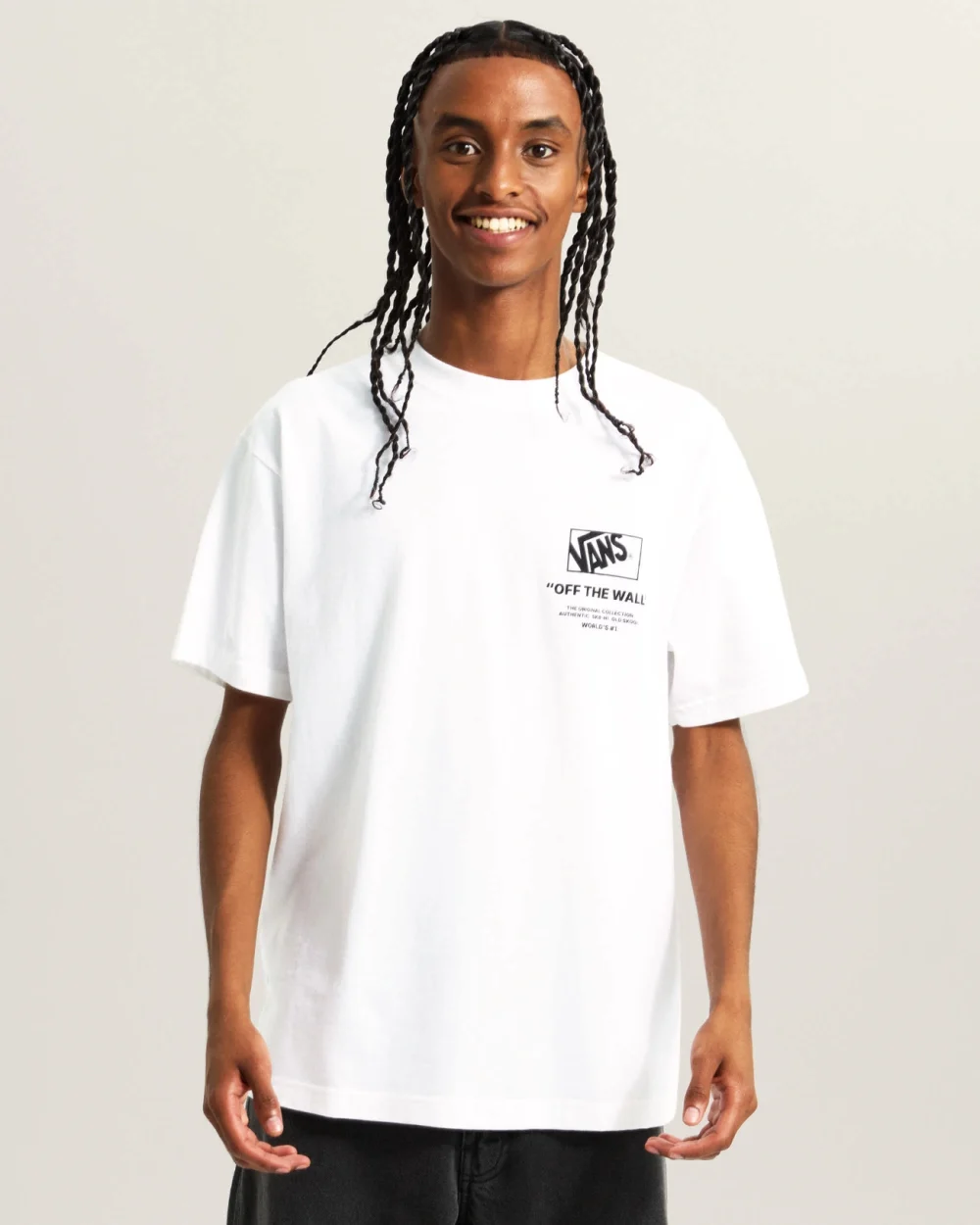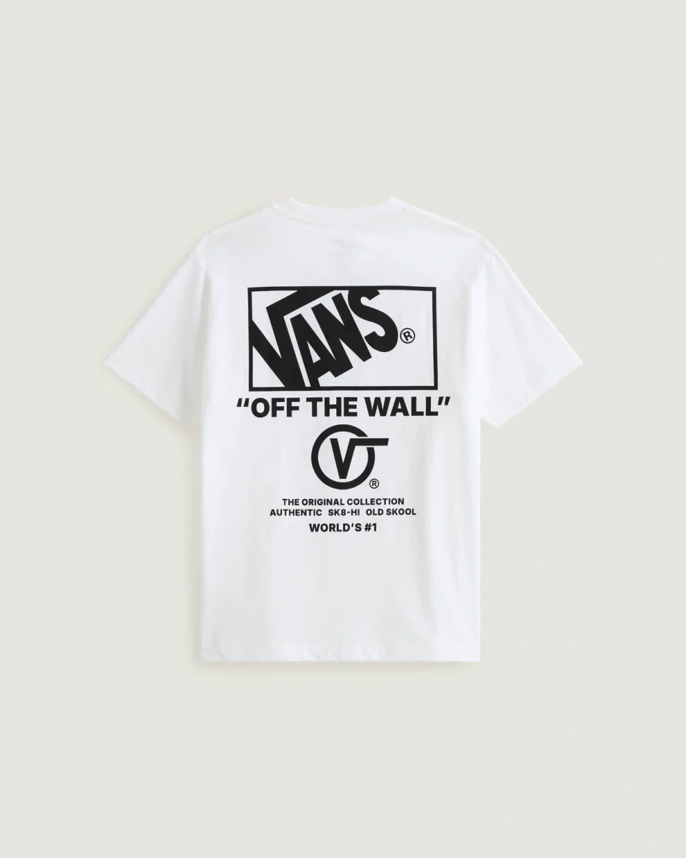 חולצת טי קצרה וקלאסית שמציגה בגאווה את הלוגואים האייקוניים של Vans מלפנים ומאחור.